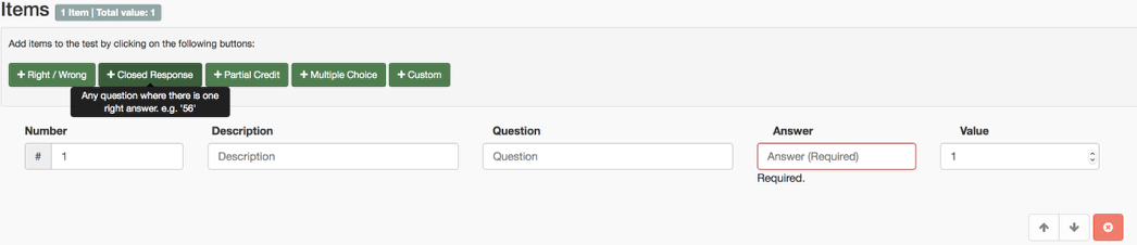 This is a popular and versatile item type. This item type allows you to mark a question with some sort of criteria, or scale. It also allows you to group items on your test that are all testing the same skill together to tally up a total score in a section of a test, which can save the marker heaps of time when marking a test. They are also very useful when designing an observational assessment or work task.