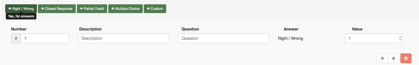 1. Change the item type. If you originally set a question to be a right/wrong question and decide you would prefer to make it a multiple-choice question, simply click and select the new item type.